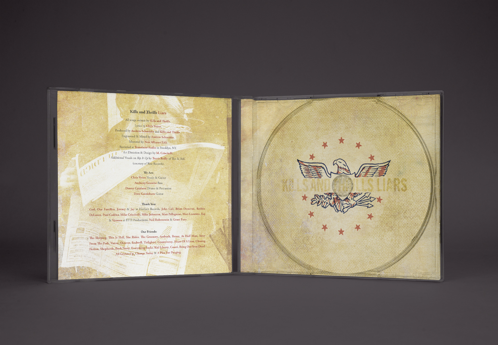 Original concept and design for Kills And Thrills' debut album "Liars". Released on Hotfoot Records.